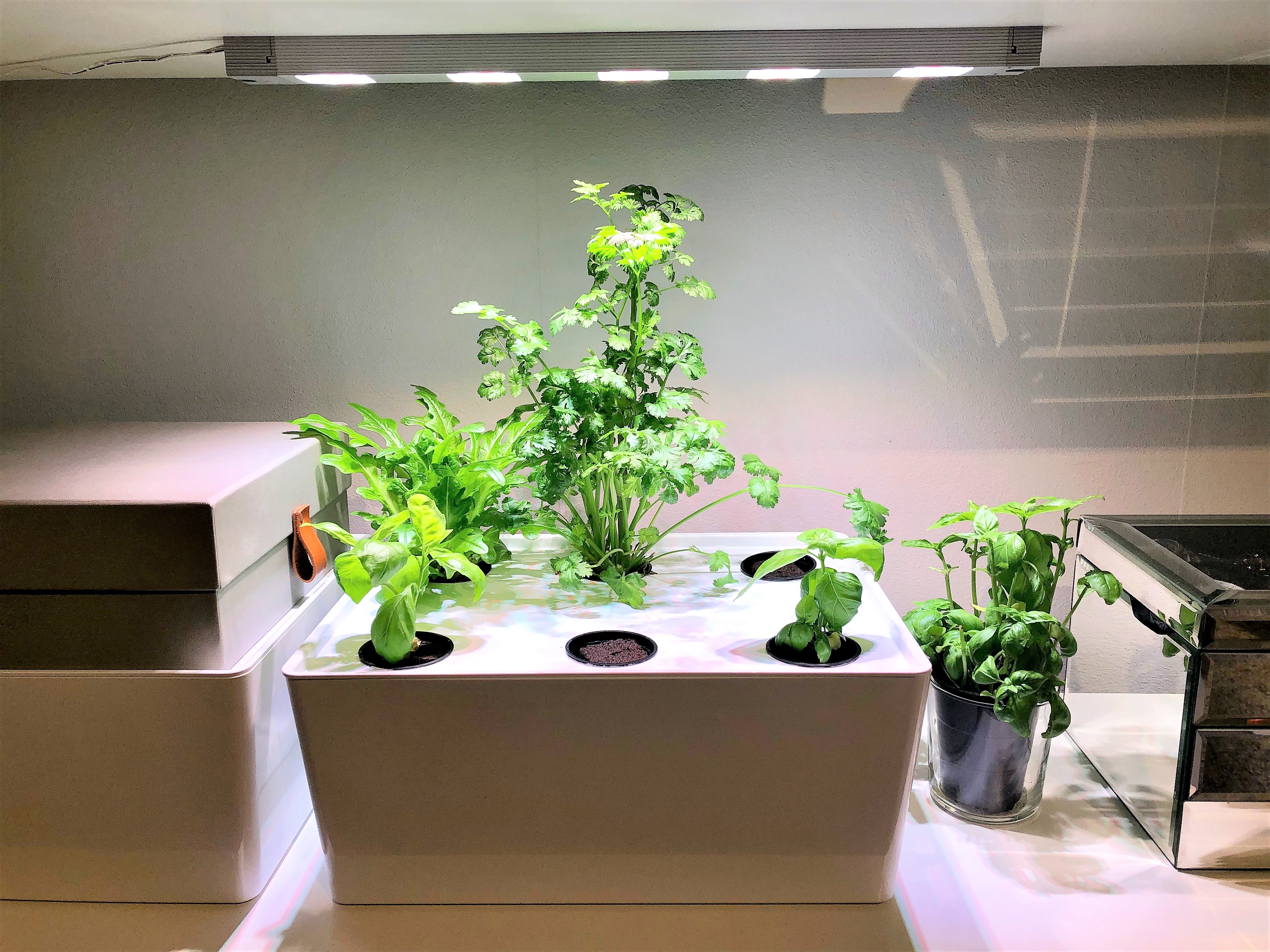 Jag avslutar detta inlägg med att uppmana alla att fundera över hur ni kan bidra till ett mer hållbart livsmedelsystem. Att äta insekter känns kanske fortfarande främmande, men att i allra största mån välja bort kött och animaliska produkter för växtbaserade alternativ har för många blivit en självklarhet. Och det behöver nödvändigtvis inte vara svårt att smyga in klimatsmarta alternativ i sitt eget hem. Vi har satt igång en hydroponisk odling av kryddor och sallad i vår bokhylla och det växer så det knakar. Psst.. det finns färdiga kit att köpa!