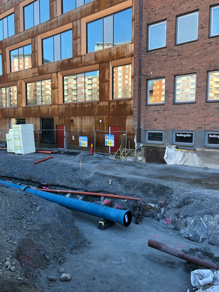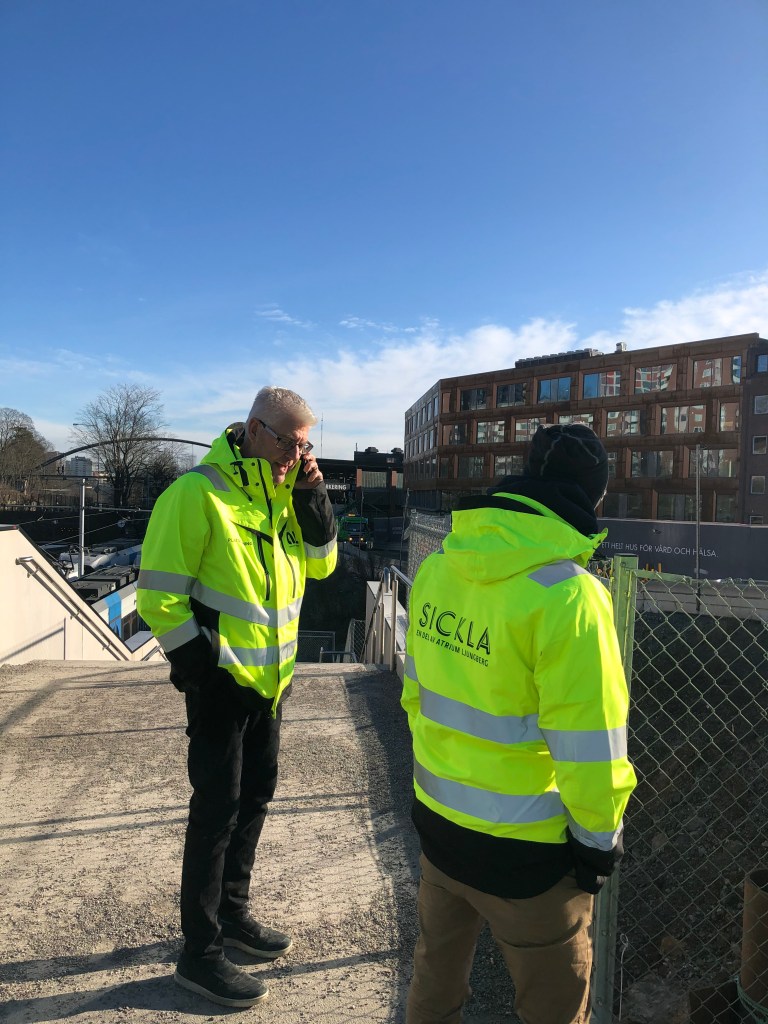 Jag anslöt till projektgruppen i systemhandlingsskedet och min tid på projektavdelningen har därför av förklarliga skäl inte innefattat speciellt mycket tid i varselväst och bygghjälm (även om jag tar alla chanser jag får). Tillsammans med genomförandeorganisationen (projektchef, projektledare, projekteringsledare, produktionsledare, byggledare och installationssamordnare) sitter jag i Gula villan som inrymmer projektkontoret för Sickla Stationshus. Genom mitt fönster följer jag utvecklingen av Nobelberget och byggnationen av förskolan Panncentralen i realtid.