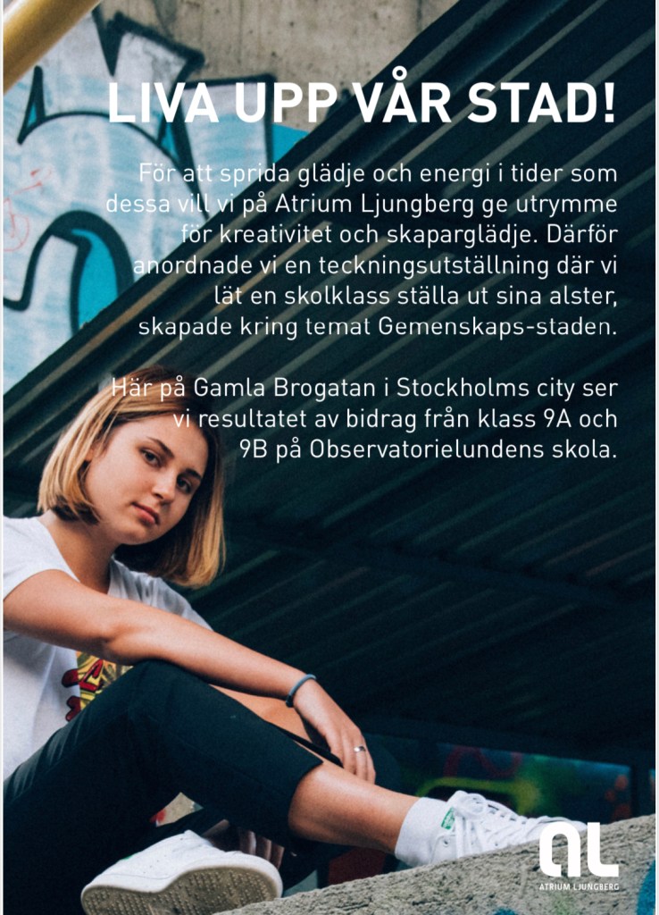 Ett annat roligt projekt som jag arbetat med under perioden är konstutställningen i ett av våra skyltfönster i city (Gamla Brogatan 24), där klass 9A och 9B från Observatorielundens skola har tolkat temat ”Gemenskapsstaden”. Miljön runt omkring oss påverkar oss så starkt, och vi har också en så stor möjlighet att påverka den. Det har varit väldigt roligt att se resultatet av dessa skolungdomars konstnärliga tolkningar av vad gemenskap i staden faktiskt är, och jag tycker verkligen att utställningen bidrog till mer liv och skaparglädje på platsen! (Utställningen är uppe till midsommar, så glöm inte att stanna till att njuta av alstren när ni har vägarna förbi!)